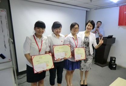会上还对二季度中业绩表现突出的员工进行了表彰,季度销冠奖由金融部王畅、谭杰、杨斌三人获得。在二季度中这三人最高的完成率达到了180%。而岗位明星奖则由金融部彭张涛 与加盟中心的汪韩菡获得。会上还对全勤奖的获得者进行了表彰。随着公司业务方向机组织架构的调整,更多新鲜血液也充实到了百居易公司,新加入的员工在会上也与大家正式见面。