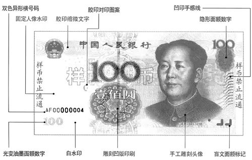 ●纸币右边凹印手感线、反复印防伪措施这两项,先用在了1999年版的1元面值上,经实践检验有较强的防伪性,所以2005年版人民币上就启用了含有这两个在内的多个防伪功能;