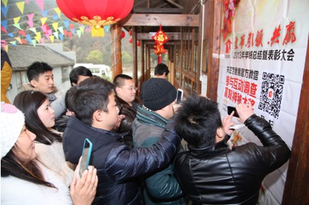 本次百居易年会,融入了很多新鲜元素。微信参与互动调查投票就是其中一个亮点,与会人员可通过微信参与调查问卷,以及为总部服务人员进行投票。