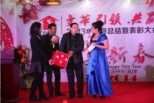 总结与表彰结束后,精彩的文艺演出和现场抽奖环节,将会场的气氛带入高潮,百居易人激情而具有活力的精神面貌也透过一个个精彩的文艺节目表现的淋漓尽致。