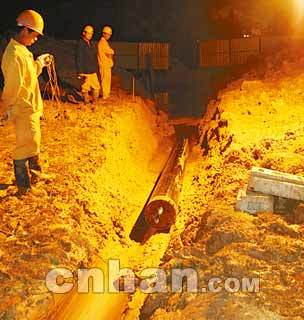 这次穿越,市燃气热力工程公司采取了国内最先进的顶管技术,首先从湖的一岸打钻杆入地,然后通过导航设备在水下5米深处“游”到对岸,在湖底形成一个直径达300多毫米的通道。然后,将天然气管道“接”到钻杆上,在对岸钻机的拖拉下,天然气管道全部进入水下通道。
