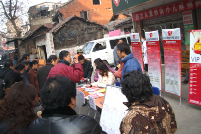 百居易房屋连锁超市“2005年迎新春送福进小区免费咨询活动”于近日在桥口区拉开帷幕。元月15日、16日,利用周六周日双休期间,百居易桥口片区的水厂店、古田二路店、东西湖店等三个连锁店在总部的组织下,分两组进入云鹤园小区、易家墩小区,在将"福"送出的同时,在现场开展了房地产中介服务免费咨询活动。根据这两天的统计,现场接受市民咨询500余人次、发放宣传单600余张、并且接受多宗现场的出售、求购委托。百居易总部派出的两组工作人员在现场就广大市民比较关心的“二手房按揭贷款提前放款”及“押旧购新”业务进行了细心的介绍,其中押旧购新业务吸引了较多有二次置业需求市民的目光。此次活动,不仅让更多的市民了解到百居易服务品牌的专业和规范,也让百居易更加贴近广大市民的生活,了解市场需求,帮助市民解决实际疑难!从而让“百姓安居更容易"的服务理念真正落到实处!随后,百居易其他连锁店也按照总部统一部署积极筹备,将于春节前陆续在全市各个城区全面展开进小区免费咨询活动。